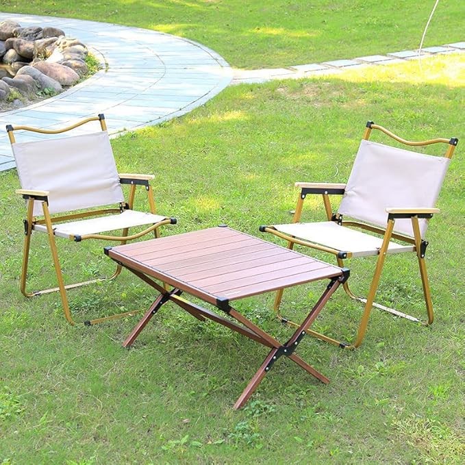 كرسي تخييم محمول عريض قابل للطي والاستخدام في الخارج شاطئ خفيف الوزن بيد خشب للنزهات والحديقة والسفر والمشي لمسافات طويلة وصيد الأسماك كراسي قابلة تدعم وزن 150 كجم