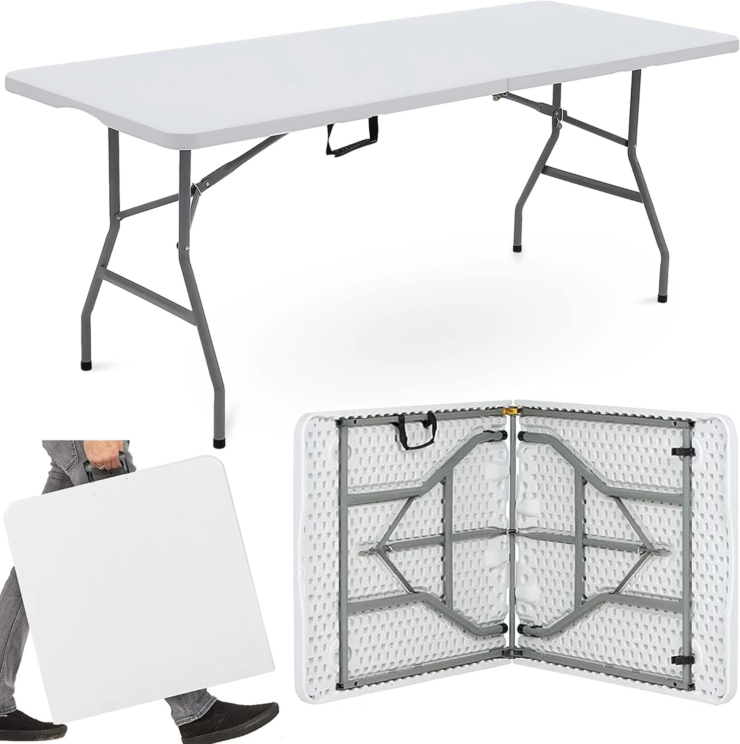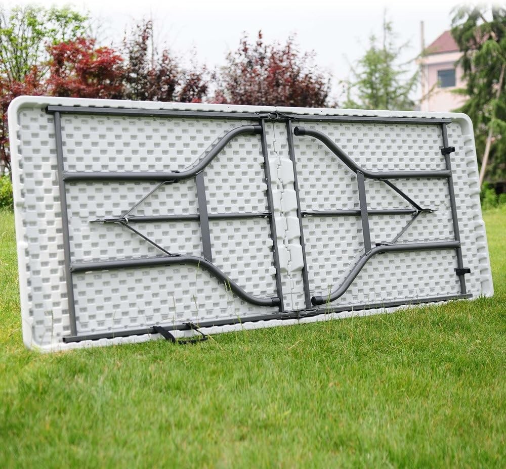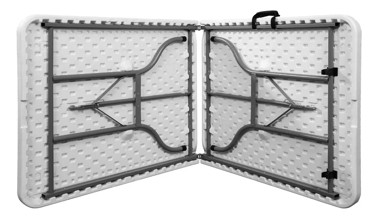 يتميز بجسم قوي قابل للطي وخفيف الوزن لسهولة النقل ومريح لسهولة التخزين. يمكن طي سطح الطاولة هذا إلى النصف مما يساعد في توفير المساحة